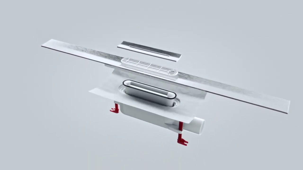 - Sistem modular format din corp de rigolă superior din inox și corp inferior din plastic cu flanșă